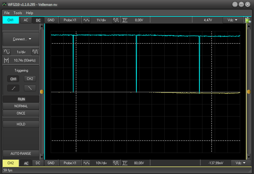 Ich habe mal versucht das ganze per Osziloskop sichtbar zu machen. Ist allerdings nur ein einfaches per USB.