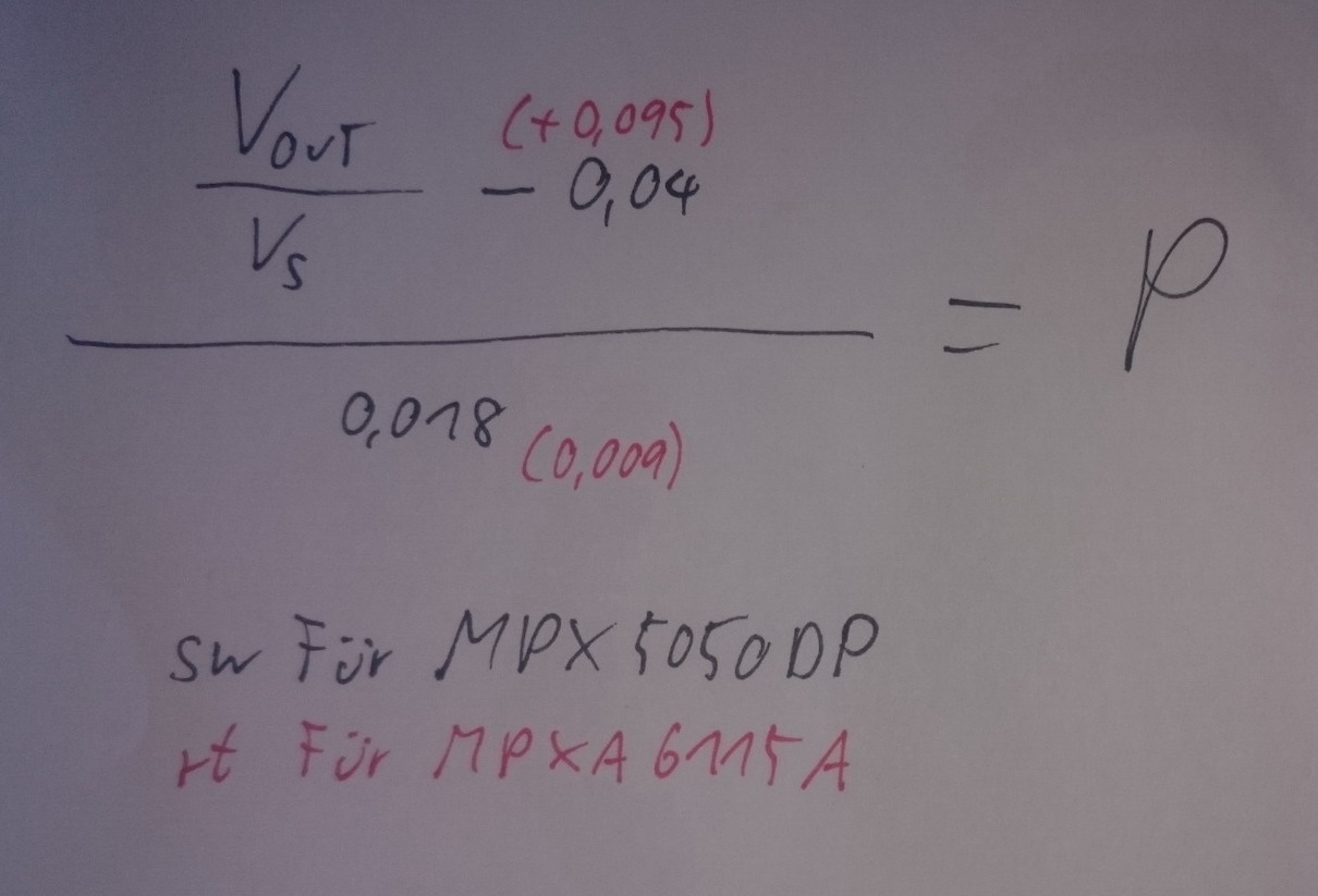 Beim Foto der nach "P" umgestellten Formel sind die roten Werte in Klammern für den MPXA6115A.