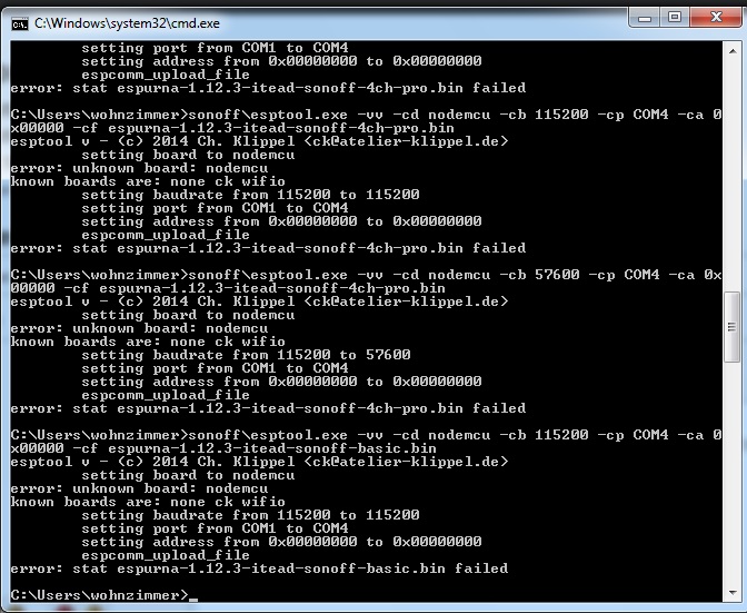 Com Port stimmt, (4), hab Rx und Tx mal vertauscht, und nach den 2 Möglichkeiten versucht, den Sonoff in sein "Flashmodus" zu bewegen.