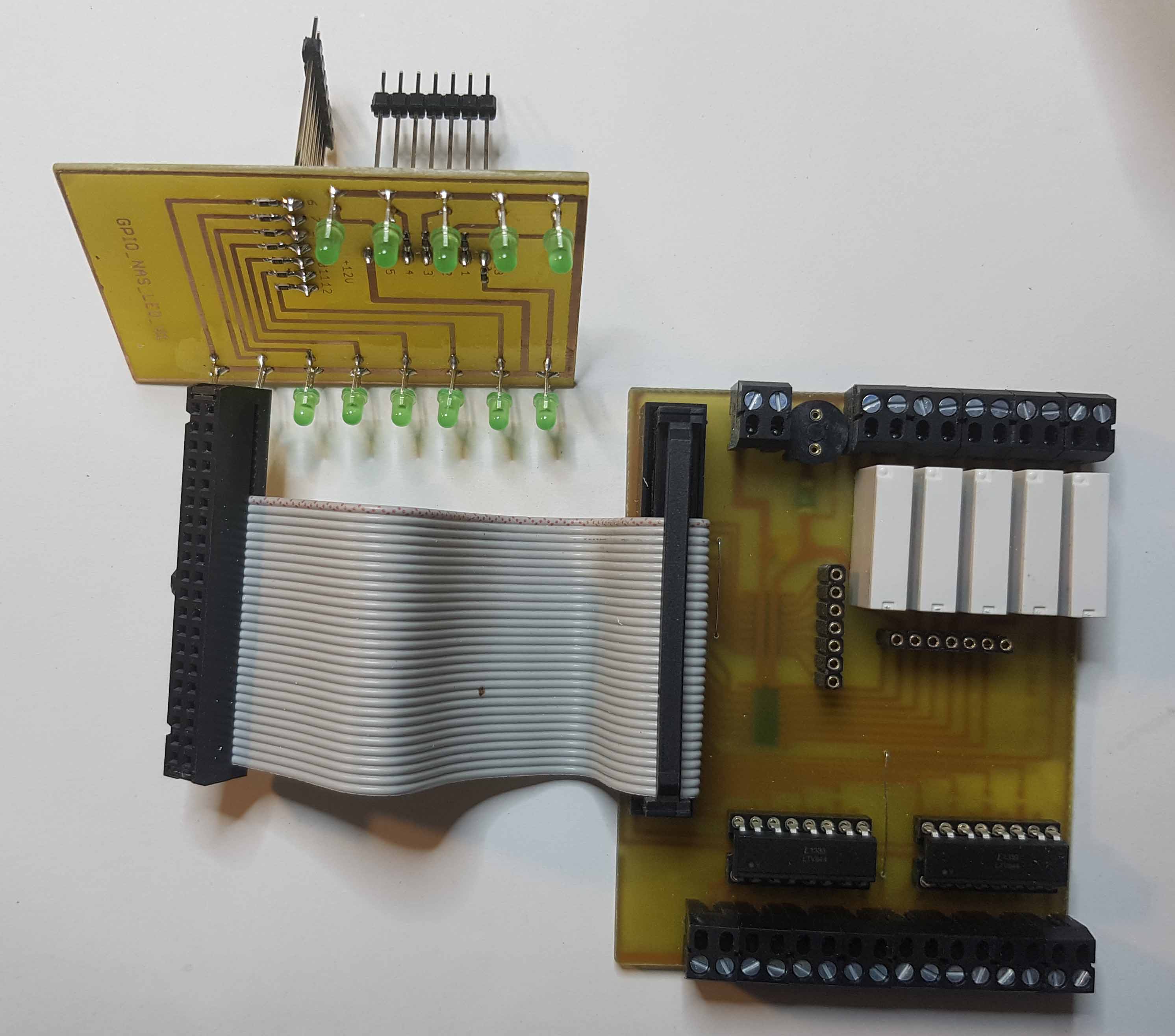 Diesmal mit 5 Relaisausgänge, 8 Eingänge über Optokoppler und ganz Banale 8xLED für Statusanzeigen der Optokoppler Eingänge das Ganze Verpackt in ein Hut4 Gehäuse.