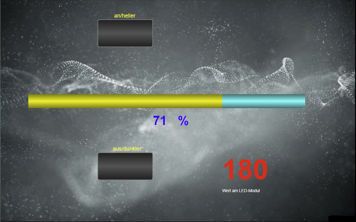 - Tastzeit über 1s am Hartware-Taster-1 erhöht den Wert 0-255 um 5 im eingestelltem Takt.