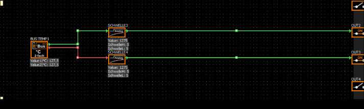 Komisch finde ich das der untere Ausgang beim Bus-Temp rot ist obwohl hinten durchgeschaltet wurde.