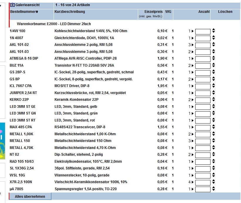 Neee so schaut bei mir der Warenkorb aus und wie gesagt es fehlt der Quarz. Auch wenn der Quarz nicht liefebar ist müste er angezeigt werden ? MFG Pilot |