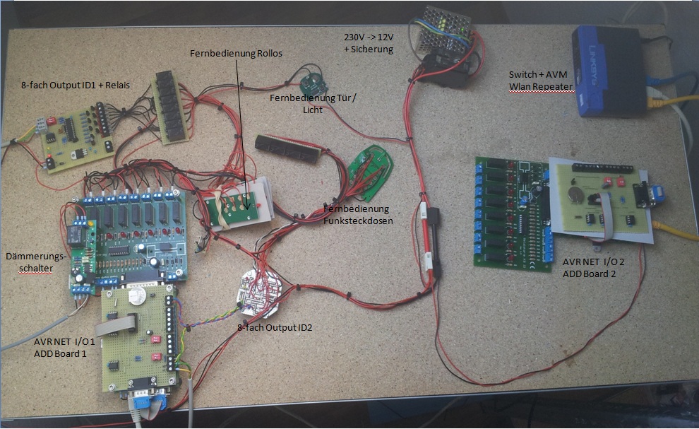 Hinweis: Die Fernbedienungen speichern die Auswahl von zwei Rollos/Zimmer nicht immer. Deswegen schalte ich vier Relais drei Mal pro Tag welche diese Auswahl ausführt