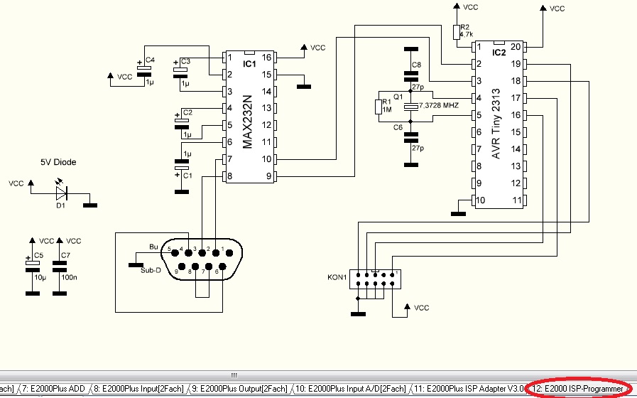 Laut den Schaltplänen aus diesem Forum hat der E2000 Isp Programmer an Anschlüssen einen 9-Pol Sub-D und eine ISP Schnittstelle. Mit der ISP Schnittstelle gehe ich wahrscheinlich ans Pollin Evaluationsboard. Mit dem Sub-D an den PC? Dann bräuchte ich also noch einen USB auf Seriell Adapter?