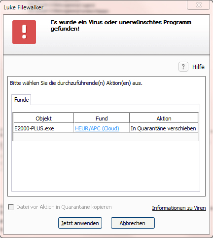 Avira Antivirus Pro, meldet beim letzten Suchlauf
