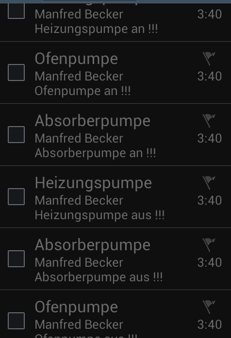 nochmal zur Info. Heute Nacht das Gleiche, um 3:40 alle drei Pumpen erst E-Mail "aus", dann "an" in der gleichen Minute. ![]() Im Anhang ein Screenshot meines Handys mit den Mails. ![]() Gruß Manfred