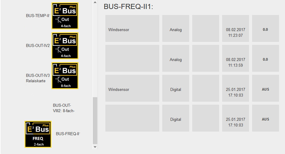 Ich muss das Thema nochmal aufgreifen ich möchte bei einem E2000 Plus analog Modul einen Windsensor verbauen bzw. dann über die Logik auswerten. Der Windsensor hat eine Ausgangsspannung von 0-5V und der analog Eingang kann eben das 0-5V Signal von 0-1023 Schritten(BIT) auflösen.. Laut Datenblatt sind 1m/s - 0,17V das heist dann bei 0-5V bzw. 0.30m/s würden das 34,8 Schritte pro m/s sein... Meine Frage wie muss oder kann ich das anstellen das mir eben die 0-5V ausgewertet werden bzw. eben dann die richtige Windgeschwindigkeit angezeigt würde? Muss in der Hardware bzw. Busmodul auch noch was angepasst werden meiner Meinung nach nicht. Da die E2000 eh nicht unterscheidet zwischen Windsensor 0-5V und Temp.Sensor oder? Danke Zuletzt bearbeitet 24.04.2020 - 12:55:25 Uhr von Gexle |
