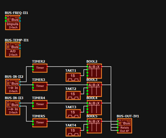 das sieht so weit gut aus. Ich würde zuerst mal den WS abklemmen und mit einem Ohmmeter oder Durchgangsprüfer testen ob beim drehen des Windrades auch Impulse kommen und nicht der Reedschalter im WS defekt ist. Um einen sauberen Pegel zu bekommen würde ich den Dipschalter 1 auch auf on schalten zur Aktivierung der Z-Diode und einen 10kOhm Widerstand zwischen Eingang und 12V Klemme anschließen. Dann hast du saubere 4,7V Highpegel. Zum testen kannst du dann den Eingang einfach gegen Masse brücken und es müsste ein Impuls gezählt werden und die LED müsste auch aus und an gehen je nach Pegel. Das gleiche müsste dann passieren beim drehen des Windsensors. In der Logik würde ich erst mal nur einen virtuellen Out an den Ausgang2 hängen und den einfach mal anzeigen. Weitere Verarbeitungsschritte erst wenn alles funktioniert. Viel Erfolg Manfred ![]() |