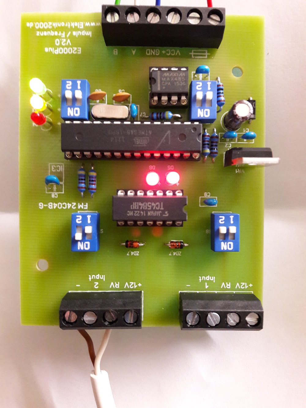 das Frequenzmodul gibt keine Werte aus. Die rote LED leuchtet dauerhaft. Der Windsenor ist an Input 2 an Minus und RV angeschlossen.