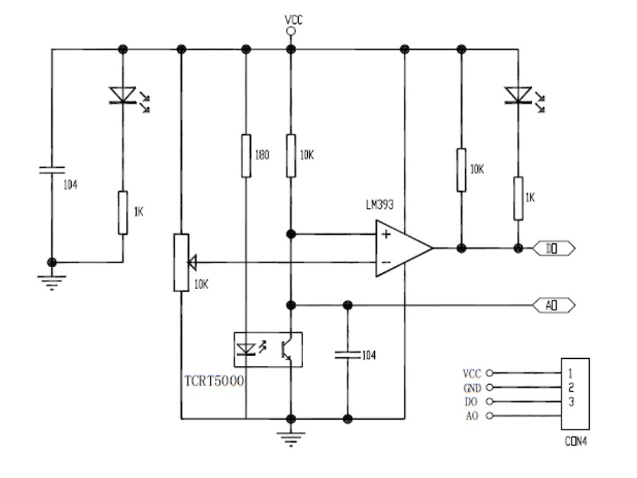 wenn Du es noch etwas einfacher möchtest dann kannst Du auch direkt den TCRT5000 bei der Bucht bestellen. Da gibts einen Anbieter in Deutschland für ein paar Euro liefert der die Module in 2 Tagen. Hier mal das Schaltbild vom Modul. Zum Auslesen muss man einfach die Sende LED ausbauen und den C104 komplett entfernen. Der verschleift einfach die Signalflanken bei schnellen Impulsen. Nach dem Entfernen hat alles beim Auslesen funktioniert.