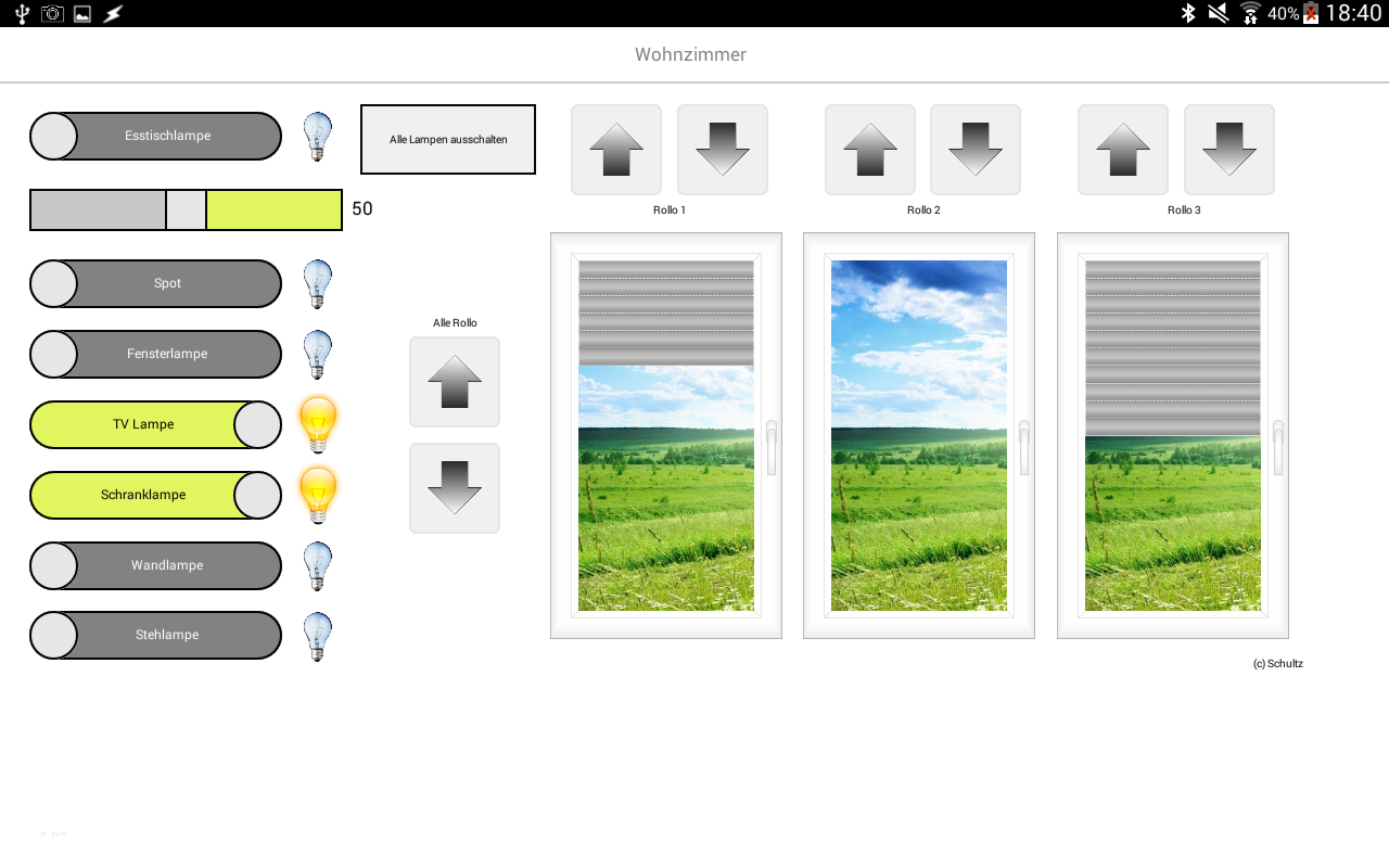 ich will euch mal vorstellen wie ich das mit der Netio App von davideickhoff gelöst habe. Ich besitze einen 2 ten Raspberry mit Raspbian als Betriebssystem, auf diesem habe ich einige Python Skripte laufen, die unter anderen mit der e2000+ MCU über das E2000-Msg Protokoll kommunizieren und mit der Netio App. Das heißt die Netio App kommuniziert mit Raspberry 2 (Rapbian) und dieser mit der E2000-MCU. Das mit dem 2 Raspberry macht mich sehr sehr flexibel. zB. schaut der Skript gesteuert im Internet nach wann Sonnen auf bzw Untergang ist und steuert meine Rollo's. Ich lade mal 2 Python Skripte und meine Netio Config hoch. Schaut sie euch mal an ob ihr was mit anfangen könnt. Die server2000w.py ist das Skript was mit netio app und mcu kommuniziert. Rollo.py überwacht die Ausgänge meiner Rollo's schreibt diese in eine Datei. So wird der Status meiner Rollos Grafisch in der Netio App angezeigt. (Voll cool) Schaut euch mal den Screenshot an. Wenn ihr fragen habt einfach posten. Gruß Günther |