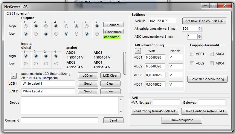 Jetzt schreibst du oben bei settings AVR-IP: 192.168.0.90 und klickst auf SAVE NETSERVER-CONFIG