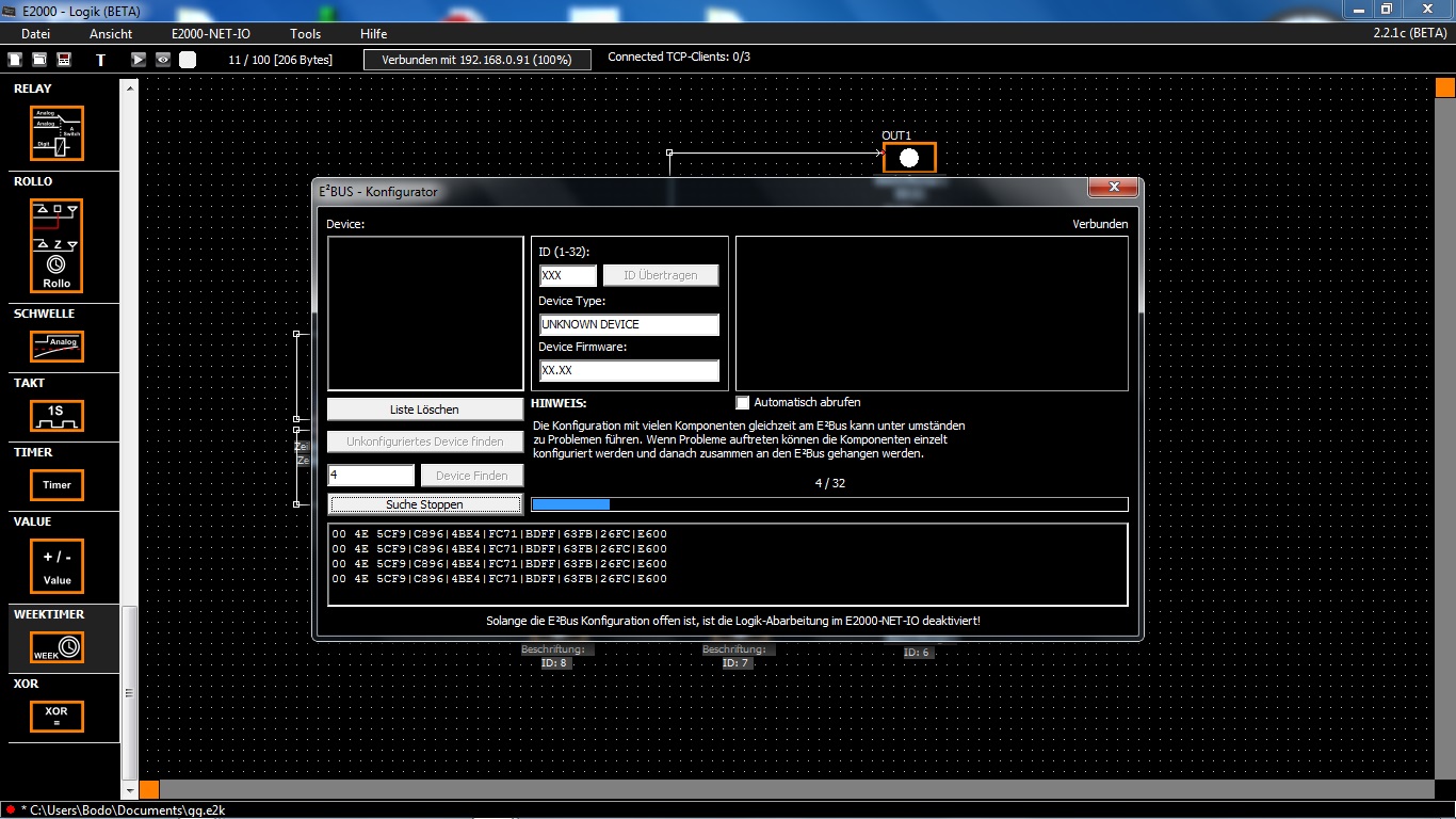 Die Led für Bus geht an sobald ich nach Device suche.