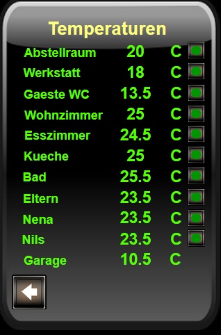 ![]() Ich möchte bei schalten eines Einganges Text in Rot oder Grün darstellen. Leider kann man bei Text die Farbe nur generell einstellen und nicht einzel bei Aktiv oder Inaktiv. Das wäre noch ein tolles Feature. Dazu habe ich also dann den gleichen Text zwei mal erstellt und einmal bei Aktiv und einmal bei Inaktiv meinen Text eingegeben. Die beiden Textfenster dann übereinander gelegt und gedacht das geht. Der Text bei Aktiv darf aber nicht leer sein, sonst verschwindet bei mir der Text der bei Inaktiv angezeigt werden sollte. Außerdem wurde der Text auch nicht angezeigt wenn ich die Farbe Grün 255.0.0 genommen habe. Ich habe dann die Logik geändert und und mit einem Inverter und einem zusätzlichen Out noch ein Inaktiv erzeugt. Da dann den Text als Aktiv in einer anderen Farbe rein und es geht. ![]() Eine Tolle Sache Wenn in Klartext der Zustand in verschiedenen Farben angezeigt wird. ![]() Wie gesagt, wen in einer späteren Version der Text für Aktiv und Inaktiv eine eigene Farbe bekommen könnte, könnte man die Logik wieder etwas kleiner machen. ![]() Hier noch zwei Bilder. Die Raumbezeichnung ändert die Farbe wenn in diesem Raum der Thermostat schaltet oder wenn man von Hand auf den Knopf hinter der Temperatur drückt, wodurch mit einem Relais der Thermostat gebrückt wird um von Ferne die Heizung einzuschalten. Schöne Feiertage für alle.