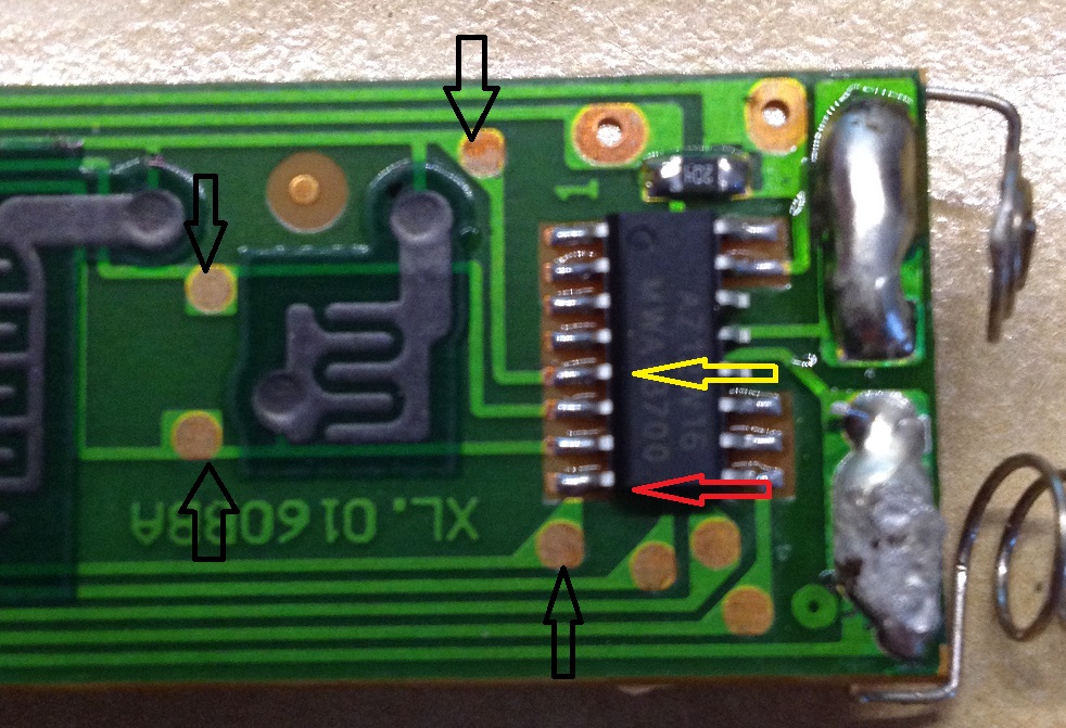 An den 4 Schwarzen Pfeilen hab ich Löcher gebohrt, und n stück Flachbandkabel verbaut.