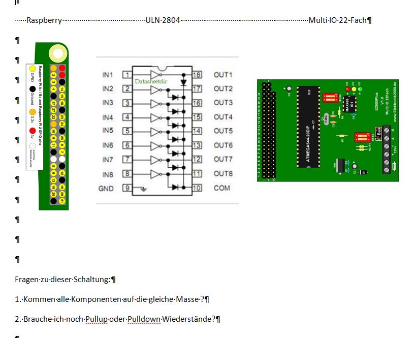 da musst du aufpassen! Der RaspberryPI kann keine 5V ab. Auch wenn du das MultiIO auf Eingang stellst kommen 5V an den Eingängen raus. Diese 5V ziehst du normalerweise dann gegen GND.