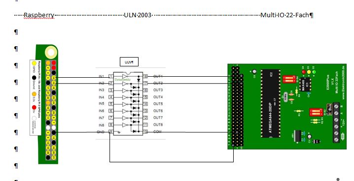 Die beste Lösung für dein Problem ist es, einen ULN zwischen Raspberry PI und dem MultiIO zu setzten.