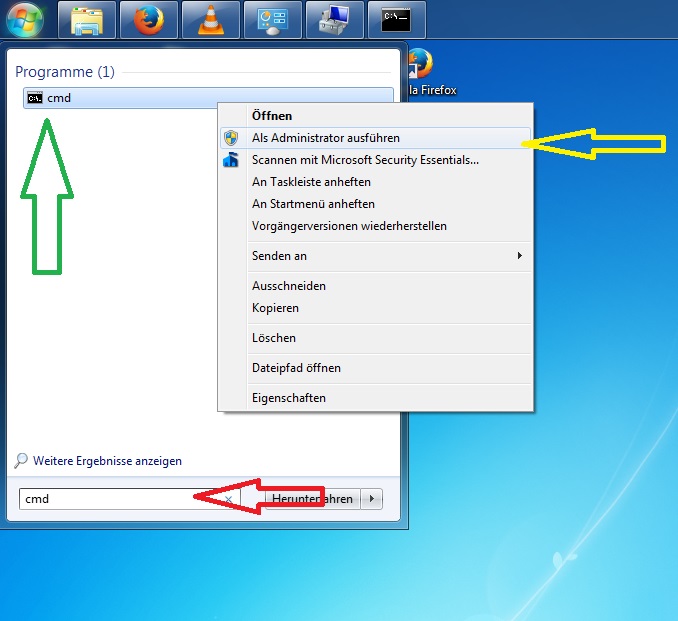 Darauf üben wir ein Rechtsklick und klicken "Als Admin ausführen (Gelber Pfeil) an.