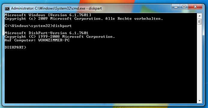 Hat man seine SD-Karte gefunden, gibt man das in die Konsole ein: select disk 1