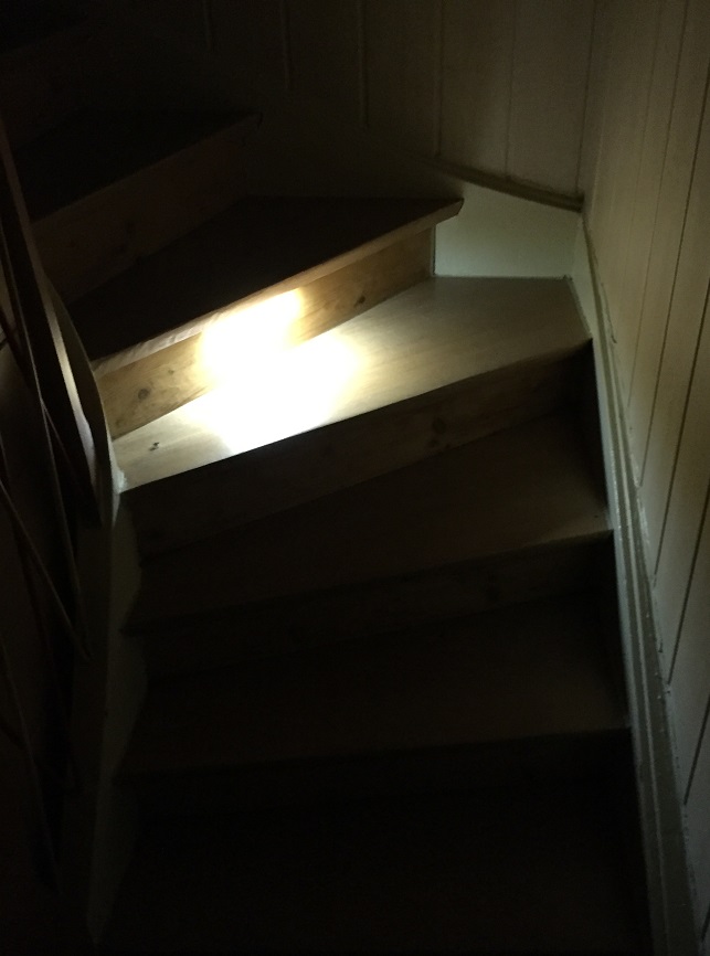 Hier mal an der Treppe gezeigt, da befinden sich UNTER 2 Stufen je ein etwa 20Cm langer Led-Strip.