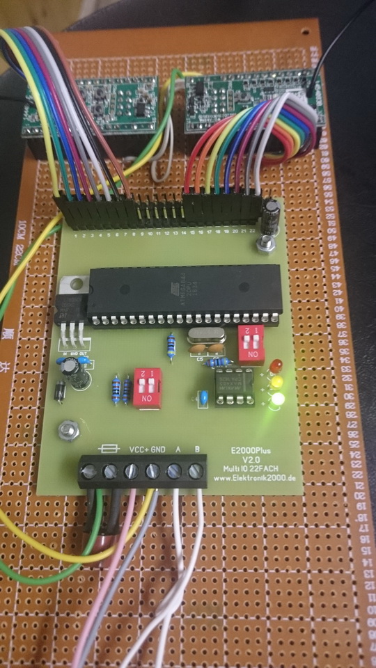 Hallo, stelle euch hier mal ein Koppelmodul E2000+ mit Homematic vor. 2x8 Kanäle (Senden und Empfangen). Ist nur ein Test funktioniert aber top. Bisher habe ich die Kopplung zwischen beiden Systemen mittels Mail gelöst (Homematic setzte Mail ab und E2000+ wertete aus...wenig Performance!) In beiden Richtungen nun mit Multi22fach Modul und Sendemodul HM-MOD-EM-8 bzw. Empfangsmodul HM-MOD-Re-8. Gruß Steffen