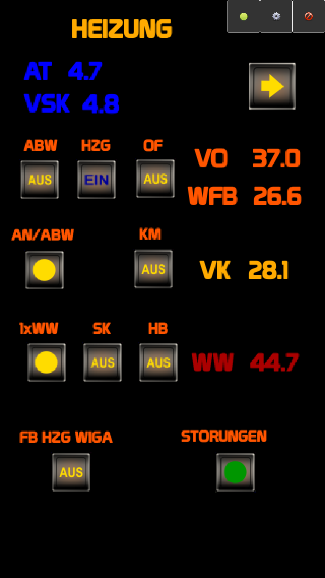 Was zumindest dauerhaft funktioniert ist die Temperaturanzeige selbst, was ich aber von den Tastern und den Statusanzeigen nicht sagen kann.