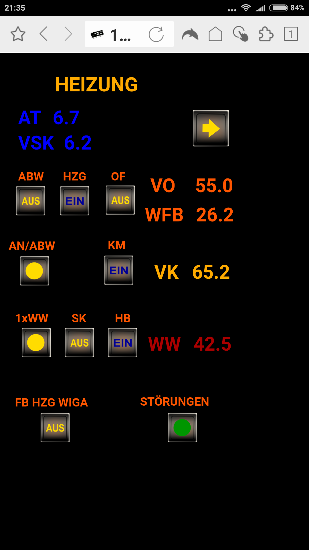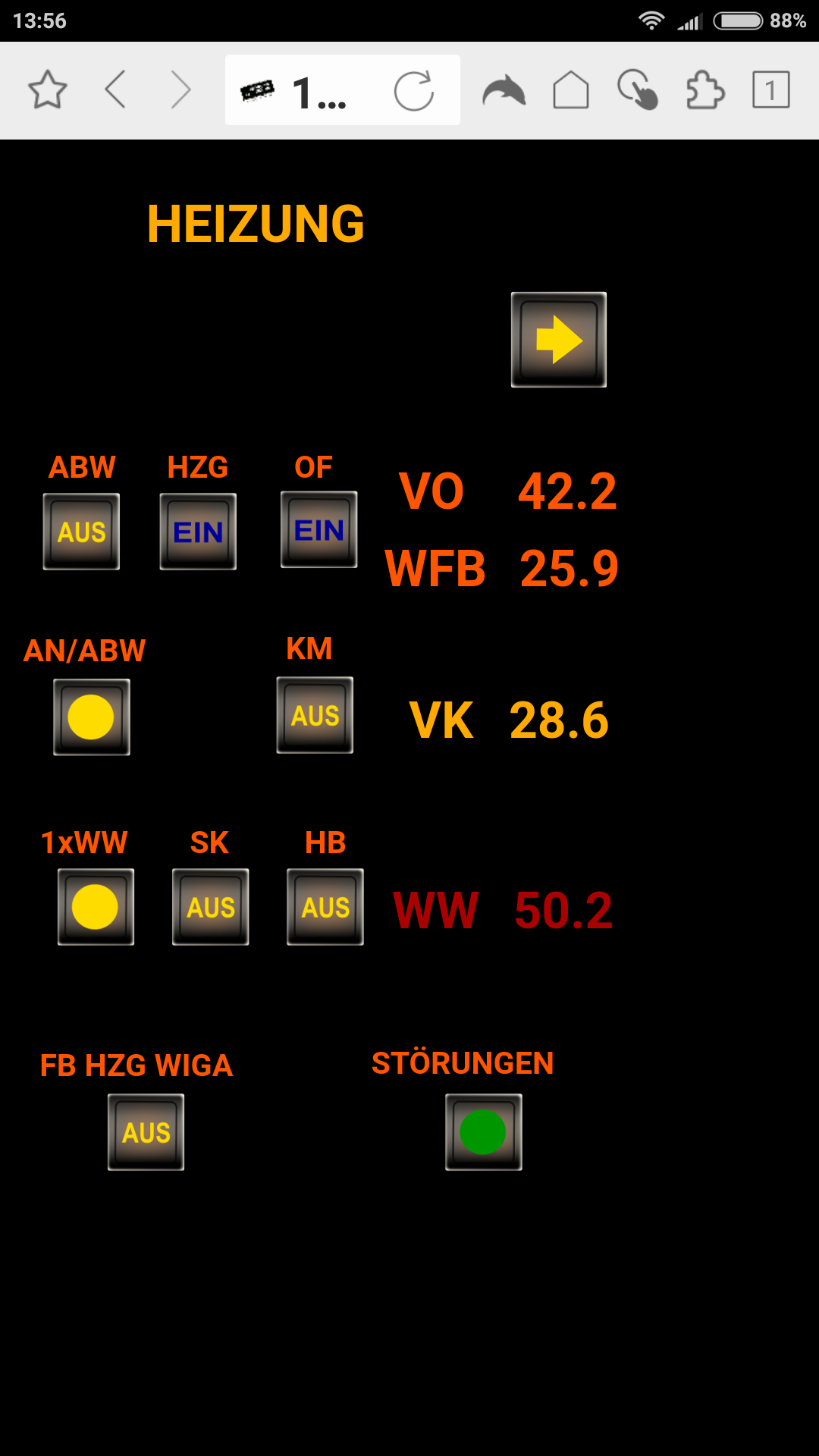 Auch nach mehr wie 10 x hochladen der Bedienoberfläche werden die Zustandsänderungen der Statusanzeigen (EIN/AUS) oft nicht angezeigt!