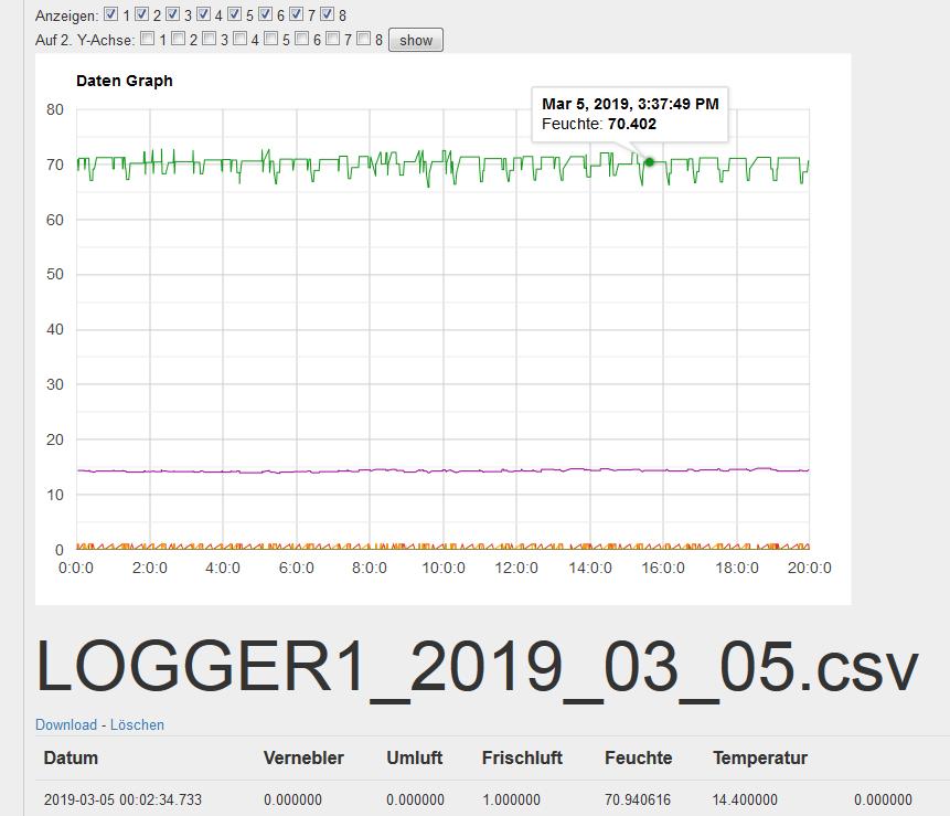 eigentlich ist das Ganze nur eine Feuchteregelung. Das weiße Gerät mit der Flasche ist ein Luftbefeuchter. Der soll den Schrank auf 70 %rF bringen. Oben die schwarze Abdeckung ist ein Edelstahl-Teefilter, dahinter sitzt ein Feuchtesensor. Dann gibt es 2 Lüfter. Der eine bläst Frischluft rein wenn es zu feucht wird, und der ist auch für den stetigen Luftaustausch zuständig. Der wird zusätzlich zeitgesteuert. Der andere Lüfter ist für die Umluft. Der Schinken muss nach dem Räuchern mindestens 2 Wochen zum Reifen da drinnen hängen. Die Luft darf dabei nicht zu lange stehen. Es muss immer etwas Bewegung sein, aber zu viel Zugluft verträgt der Schinken auch nicht. Das Gerät funktioniert nur solange die Umgebungsluft trockener ist als im Schrank. Das ist aber im Winter bei uns im Keller immer so. Ich tüftele immer noch daran, die richtigen Einstellungen für die Logik zu finden. Der Logger ist dabei echt Gold wert ![]() _________________________ E2000+ auf Raspberry Pi B; 4 x Multi-IO UP-Module; 1x Input Modul 2fach; 1 x Dimmer-Modul; 1x LCD-Modul (ungetestet) |