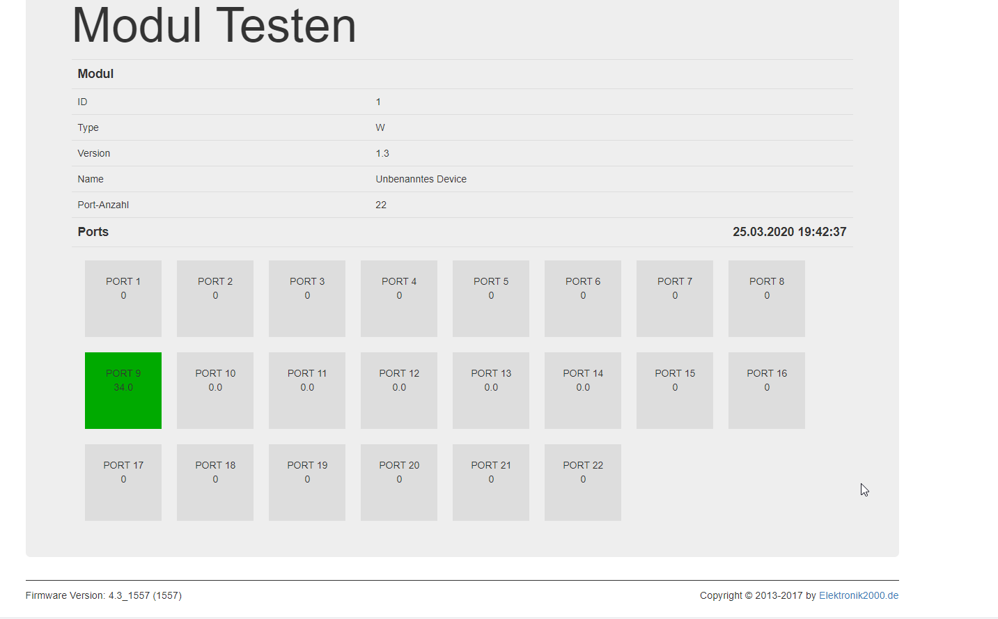 Hier seht Ihr oben die Firmware 557 am 22-fach Modul und unten Konfiguration DHT22 an Port 9: