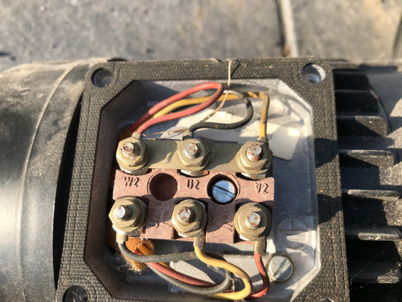 Diese wird mit 400V betrieben und hat (siehe Foto) folgende Klemmen: