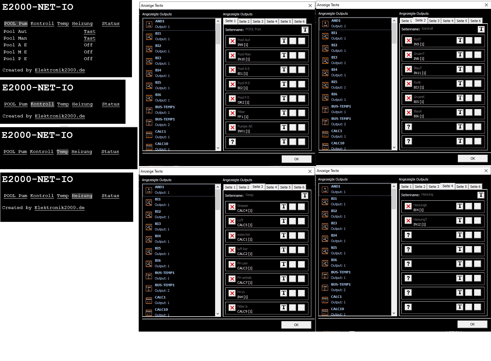 Hallo zusammen habe meine Pool Steuerung mit E2000 gemacht, jetzt nach einigen Jahren Laufzeit wollte ich ein Paar Äanderungen vornehmen und diese auch in der Anzeige ( Webinterface)