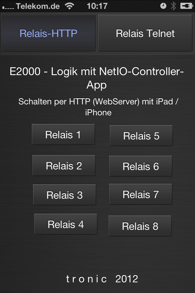 Es ist geschafft, iPhone / iPad, das Polling-Bord mit der E2000-Logik-Firmenware und die App "NetIO-Controller" (von D. Eickhoff) laufen sehr toll zusammen. Sowohl über den Webserver der E2000 als auch per TelNet (Socket). Hierzu füge ich zwei Bilder vom iPad hinzu, die diese beiden Steuerarten in einer JSON-Datei (für die App) toll realisieren.
