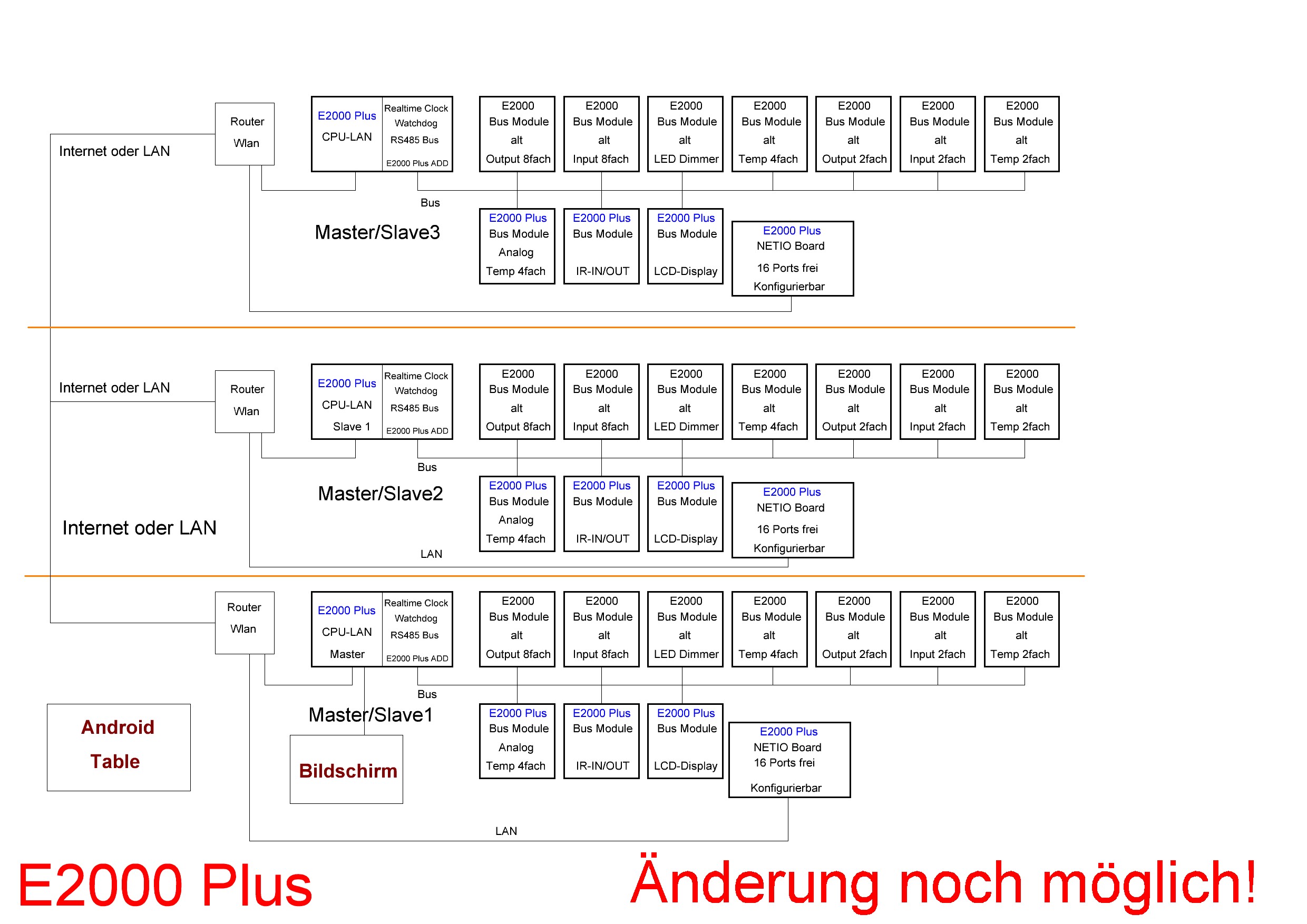 So gang verstehe ich die Übersicht nicht, leider. Deswegen kurze Frage, wird es möglich sein die k8io an das E2000+ System anschließen? |