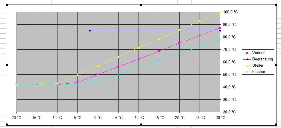 Wichtig wäre die Außentemperaturabhängige Steuerung (Kennlinie)