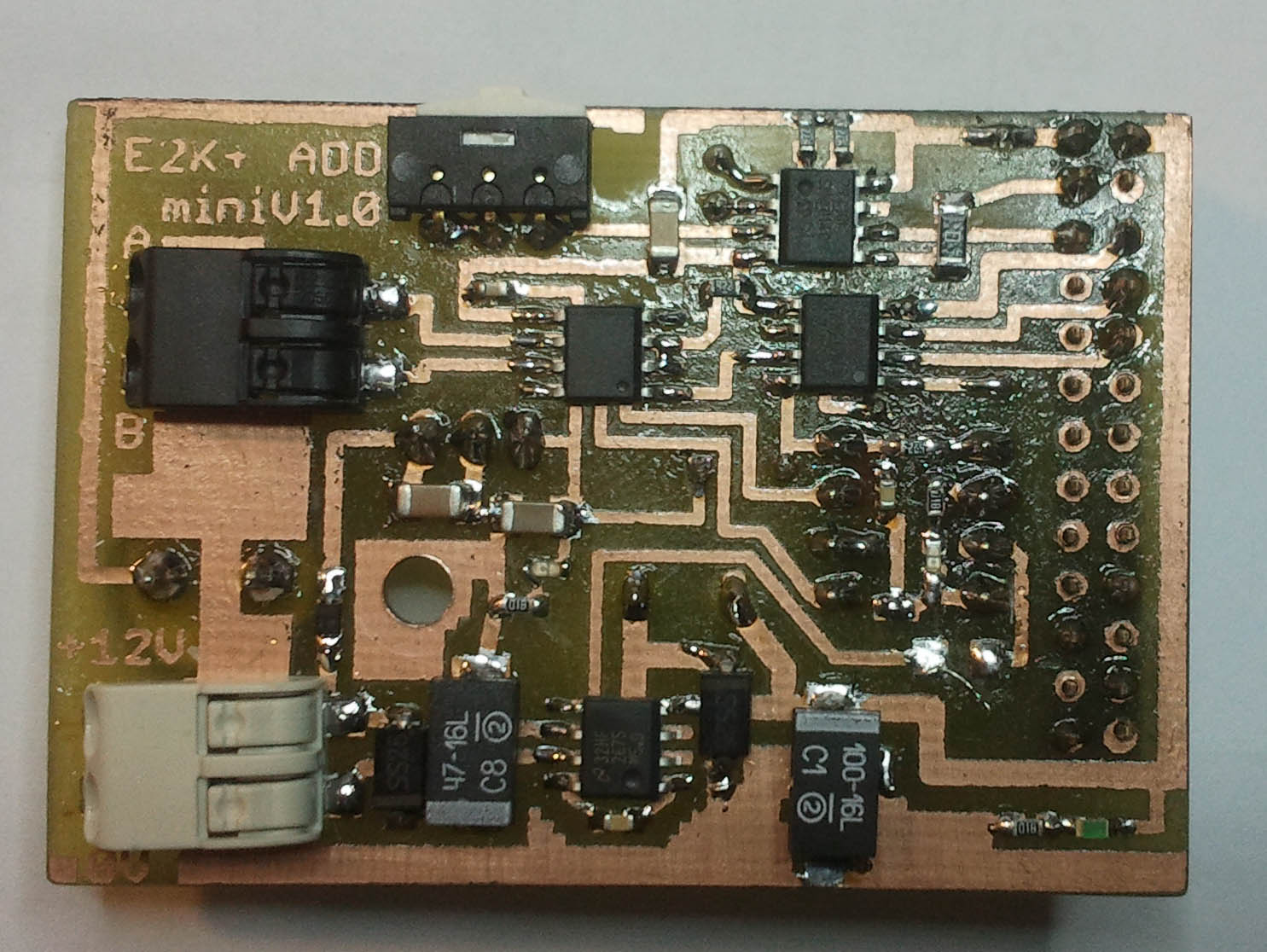 Trotz des schönen Wetter in Berlin konnte ich mir es nicht verkneifen meine Version vom E2000+ADD in Betrieb zu nehmen. Kleine Änderung ist das zuschalten der 5V für den Raspery. Ich habe einen LM2675 benutz. Dieser hat einen on/off Eingang mit dem ich die Versorgungsspannung einschalte. Leider kann ich noch nicht alles Testen da die alten Busmodule noch nicht wollen.